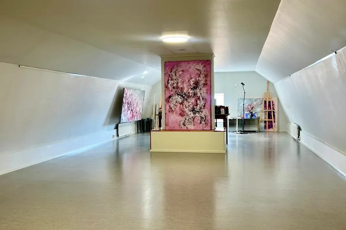 Galleriatila on intiimi ja harkittu: studiovalaistus tuo teokset esiin parhaalla mahdollisella tavalla. Huomioithan, että tilaan sopivat enintään 150 cm korkeat teokset.